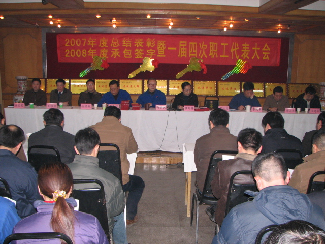 2月4日上午,公司四樓會(huì)議室洋溢著節(jié)日的喜慶。公司2007年度總結(jié)表彰、2008年承包合同簽字暨第一屆四次職工代表大會(huì)在這里隆重召開(kāi)。公司領(lǐng)導(dǎo)侯向保、馮安民、宋元祥、李建軍、鄭小立、王翔順、王建華、任順戰(zhàn)、任忠民和全體中級(jí)管理人員,2007年度“勞動(dòng)模范”、“模范黨員”及職工代表、各團(tuán)支部書(shū)記等近200人參加會(huì)議。會(huì)議由公司黨委副書(shū)記馮安民主持。