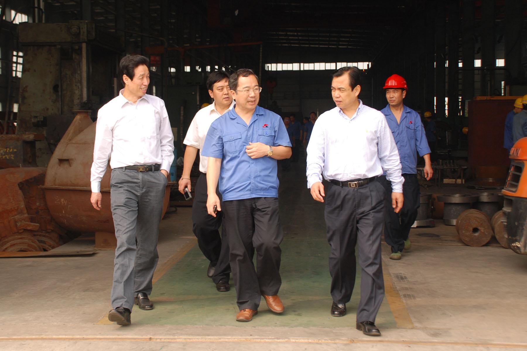 任沁新一行先后到重機(jī)廠、金結(jié)廠以及在新廠區(qū)生產(chǎn)作業(yè)的中凱礦機(jī)公司、華凱鑄鍛鑄鐵廠現(xiàn)場(chǎng)實(shí)地考察。來到一個(gè)同行業(yè)的生產(chǎn)現(xiàn)場(chǎng),他倍感親切,不時(shí)地在不同生產(chǎn)設(shè)備及半成品、產(chǎn)成品前和公司董事長侯向保親切交談。